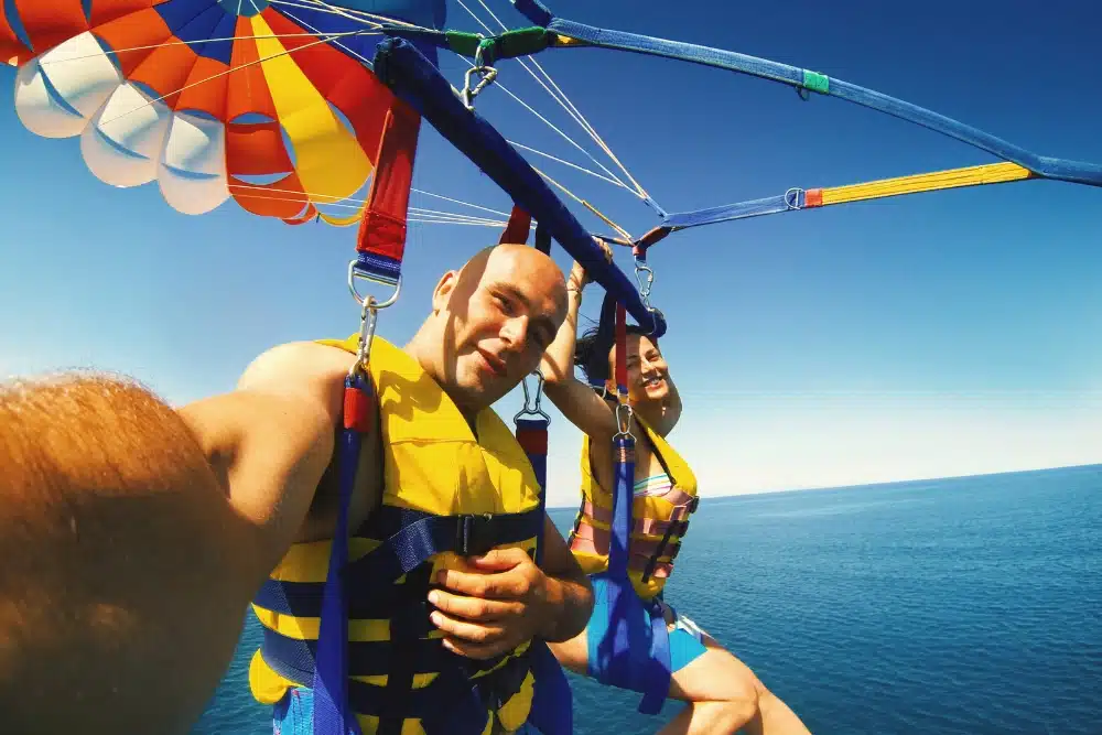 Soar up to 300 feet above the ocean on our Parasailing Adventure! After a safety briefing, you’ll be securely harnessed to a vibrant parachute and gently lifted into the sky, taking in breathtaking panoramic views of the coastline and sparkling turquoise waters. Enjoy round-trip transportation for a seamless experience. Perfect for thrill-seekers and sightseers alike, this adventure blends excitement and serenity, showcasing the island’s beauty from an unforgettable new perspective!